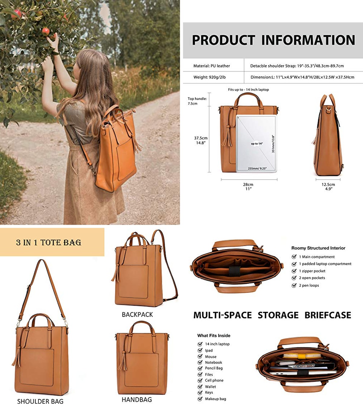 6. Vegan Leather Convertible Tote Bag