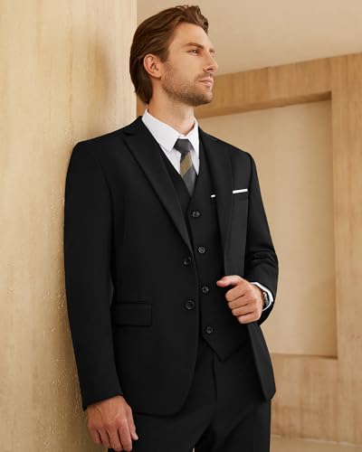 Product | WULFUL Men’s 2 Piece Slim Fit Suit Set One Button Blazer Jacket Pants Tuxedo Set for Party, Wedding and Business Black WULFUL | WULFUL Men’s Slim Fit 3 Piece Suits Two Button Blazer Vest & Pants Tuxedo Set for Business Wedding Party Black WULFUL | MY’S Men’s 3 Piece Suit Set with Tie, One Button Slim Fit Solid Jacket Vest Pants, Prom Party Wedding Business Suits for Men, Black Medium MY’S |