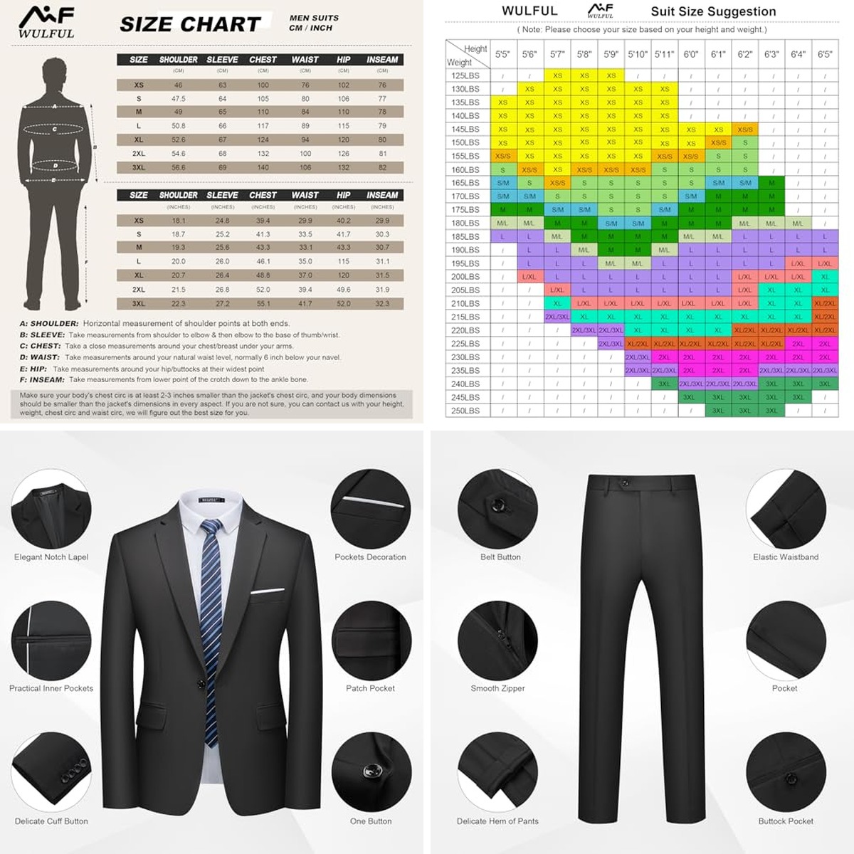 Product | WULFUL Men’s 2 Piece Slim Fit Suit Set One Button Blazer Jacket Pants Tuxedo Set for Party, Wedding and Business Black WULFUL | WULFUL Men’s Slim Fit 3 Piece Suits Two Button Blazer Vest & Pants Tuxedo Set for Business Wedding Party Black WULFUL | MY’S Men’s 3 Piece Suit Set with Tie, One Button Slim Fit Solid Jacket Vest Pants, Prom Party Wedding Business Suits for Men, Black Medium MY’S |