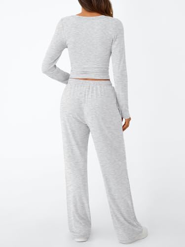 Trendy Queen Womens 2 Two Piece Set 2025 Summer Workout Beach Vacation Gym Clothes Fall Fashion Lounge Matching Sweatsuit Sweat Teacher School Wide Leg Pant Travel Outfit Fitness Athletic Clothing