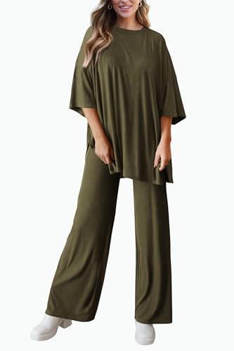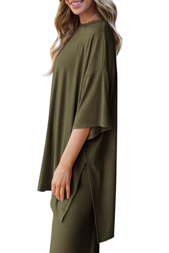 PRETTYGARDEN Two Piece Sets For Women Summer Fashion Lounge Matching Set 2025 Travel Vacation Airport Outfits Clothing (Army Green,Large)