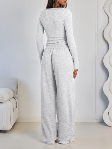 AUTOMET Women 2 Piece Outfits 2025 Plus Size Fall Fashion Airport Travel Pants Lounge Set Leisure Vacation Winter Clothes Sweatsuits Grey M
