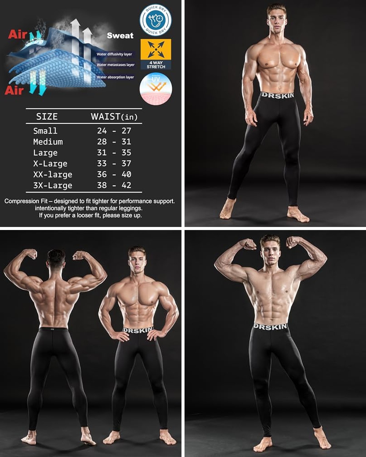 DRSKIN 3 Pack Men’s Compression Pants Tights Leggings Sports Baselayer Running Athletic Workout Active Thermal (Classic B01 3P, L)