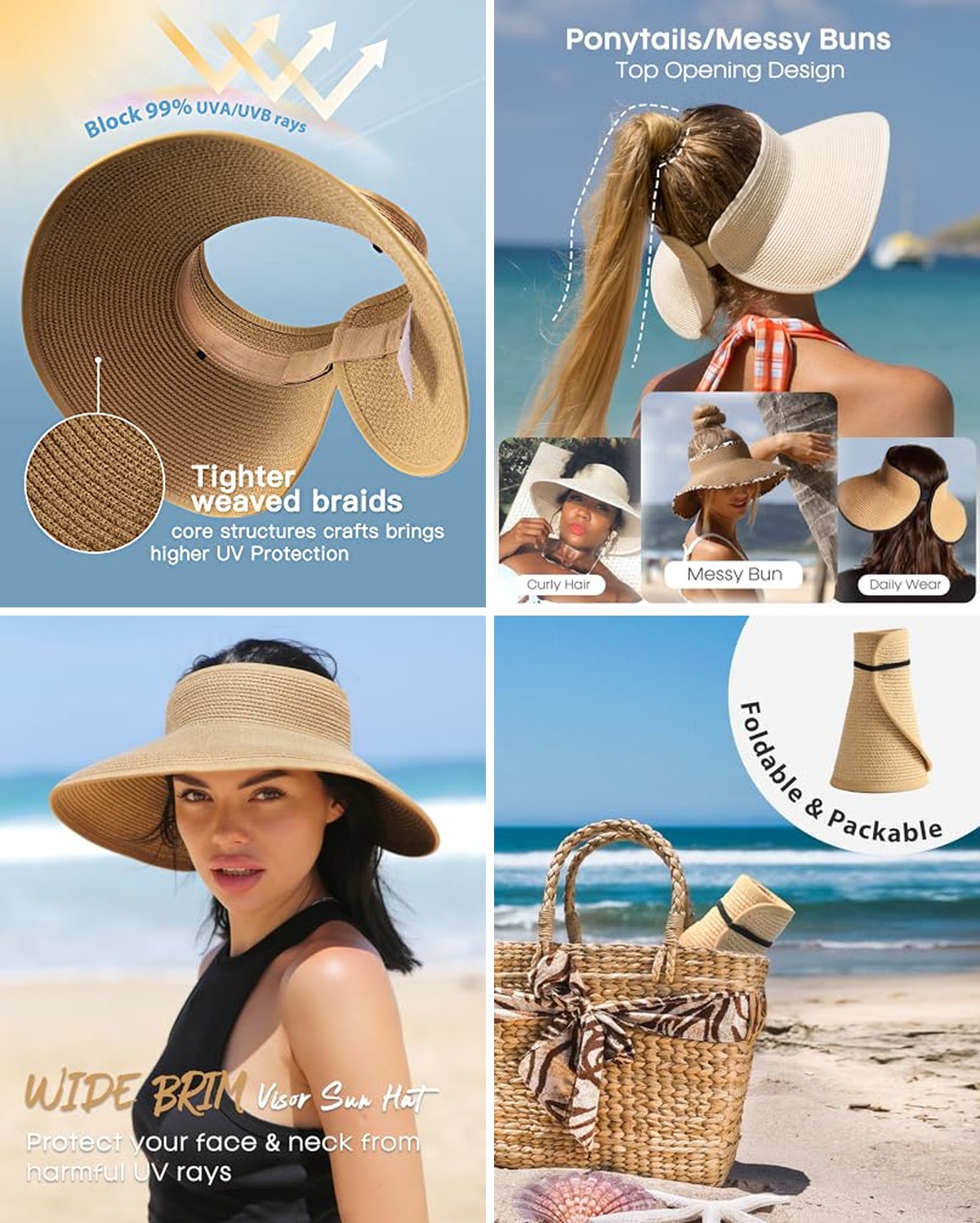 Product | FURTALK Sun Visor Hats for Women Wide Brim Straw Ponytail Summer Beach Hat UV UPF Packable Foldable Travel Khaki FURTALK | Sun Hats for Men Women Bucket Hat UPF 50+ Boonie Hat Foldable UV Protection Hiking Beach Fishing Summer Safari(1pack-Beige) ZOORON | FURTALK Womens Beach Sun Straw Hat UV UPF 80+ Travel Foldable Brim Summer UV Hat FURTALK |