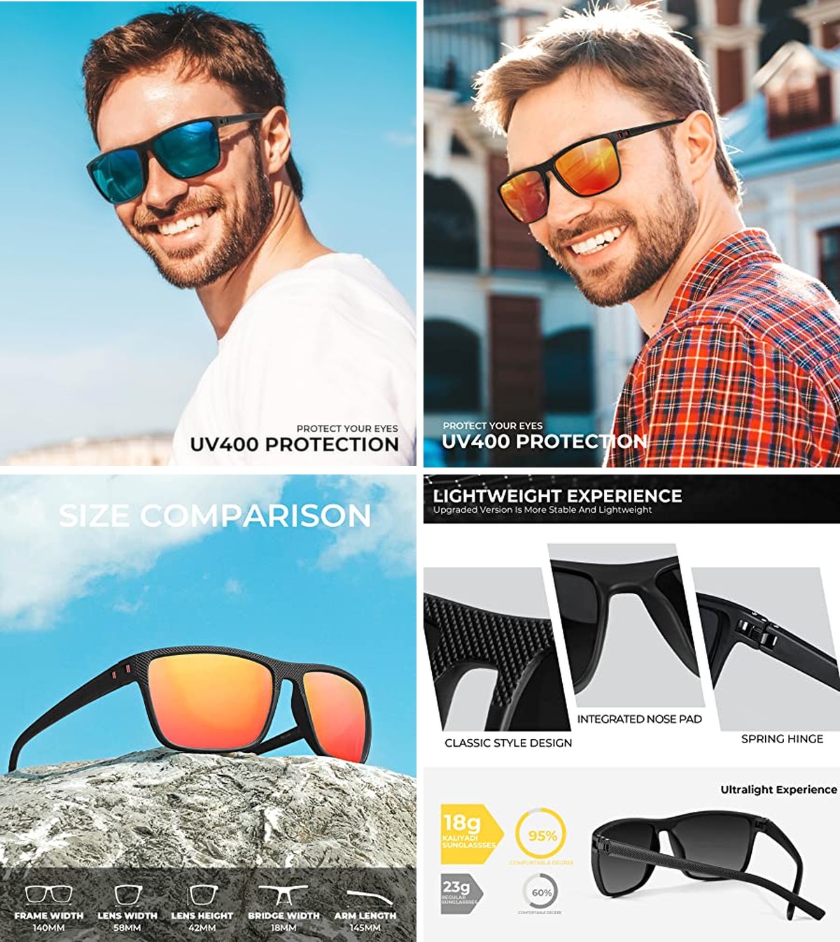 Product | KALIYADI Polarized Sunglasses Men, Lightweight Mens Sunglasses Polarized UV Protection Driving Fishing Golf (Black/Ice Blue/Red) KALIYADI | FEIDUSUN Sunglasses Men Polarized Sunglasses for Mens and Womens,Black Retro Sun Glasses Driving Fishing UV Protection FEIDUSUN | Highyou Rectangular Polarized Fit Over Glasses sunglasses for Men and Women UV400 Protection (Grey) Highyou |