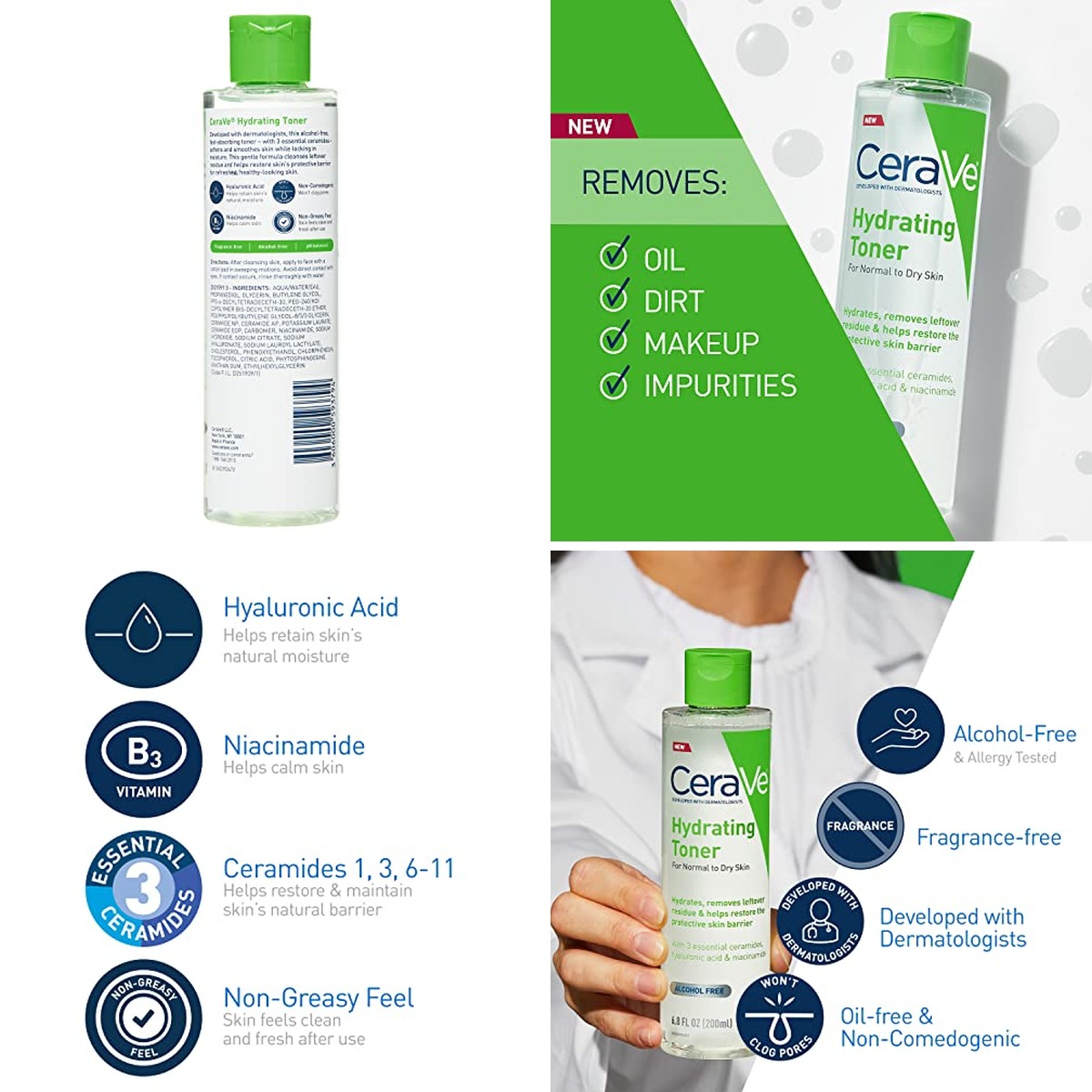 Product | CeraVe Hydrating Toner for Face Non-Alcoholic with Hyaluronic Acid, Niacinamide, and Ceramides for Sensitive Dry Skin, Fragrance-Free Non Comedogenic, Full Size, 6.8 Fl Oz CeraVe | THAYERS Alcohol-Free Rose Petal Witch Hazel Facial Toner for Glowing Skin, Soothing, Hydrating, Refreshing Toner for All Skin Types, 12oz (Packaging May Vary) THAYERS | The Ordinary Glycolic Acid 7% Exfoliating Toner, Brightening and Smoothing Daily Toner for More Even-Looking Skin Tone, 3.4 Fl Oz The Ordinary |