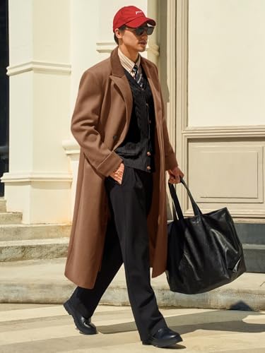 Mens Trench Coat Mid Length Wool Coat Big and Tall Winter Jacket Single Breasted Peacoat Lapel Cardigan Jacket