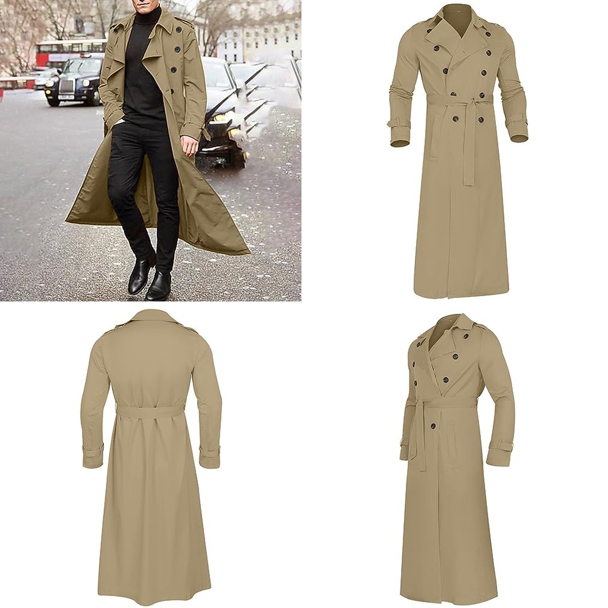 Runcati Mens Full Length Trench Coat Notched Lapel Long Jacket Double Breasted Classic Winter Overcoat